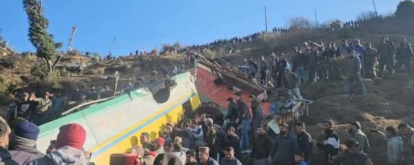 हिमाचल प्रदेश के सिरमौर जिले में शुक्रवार को एक दर्दनाक हादसा हो गया। न्यूज़ एजेन्सी से प्राप्त रिपोर्ट के अनुसार शिमला से कुपवी जा रही एक प्राइवेट बस हरिपुरधार गांव के पास 500 फीट गहरी खाई में गिर गई। इस हादसे में 14 लोगों की जान चली गई और करीब 52 यात्री घायल हो गए। पुलिस के मुताबिक, बस सड़क से फिसल गई और खाई में पलट गई। बस में 39 लोगों के बैठने की क्षमता थी। राष्ट्रपति द्रौपदी मुर्मू और प्रधानमंत्री नरेंद्र मोदी ने इस घटना पर गहरा दुख