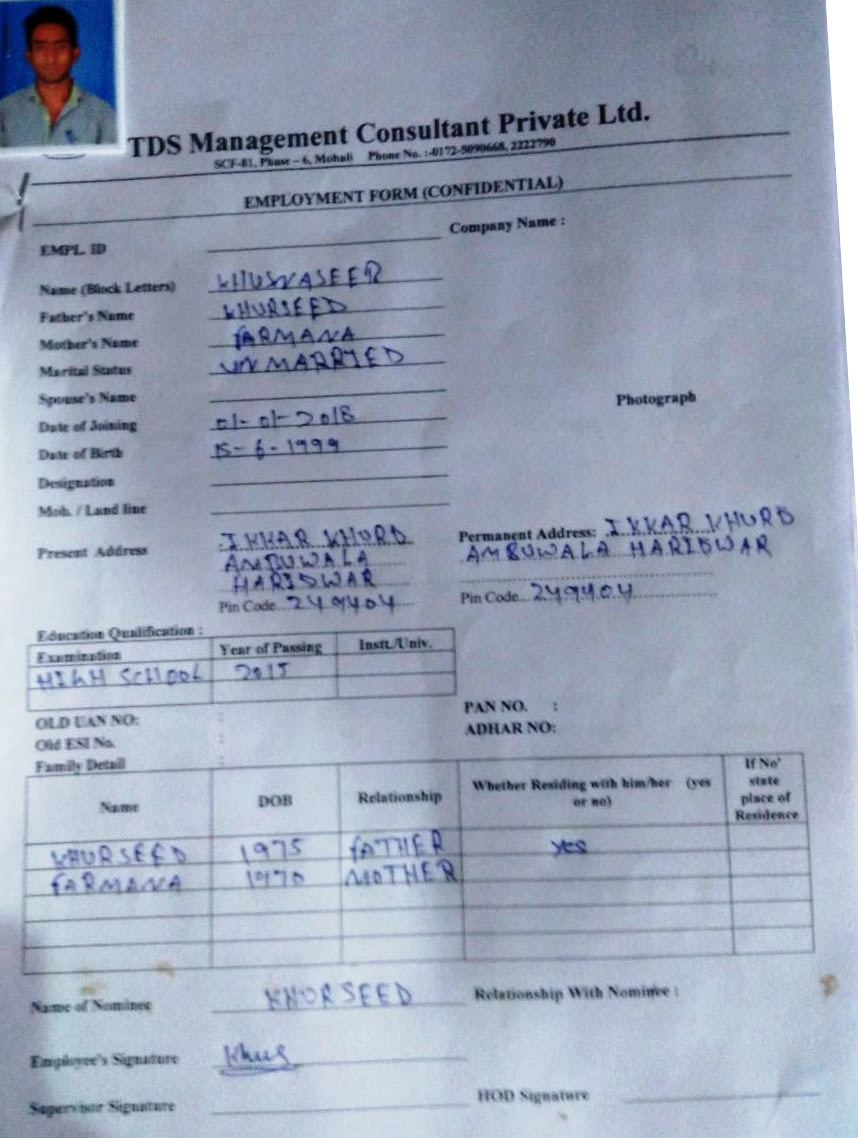 हमने कई ठगी के शिकार लोगों से बातचीत की और उनमे से कुछ लोगों ने हमसे अपने -अपने APPLICATION FORM share किया हम आपसे कुछ APPLICATION FORM share कर रहे हैं